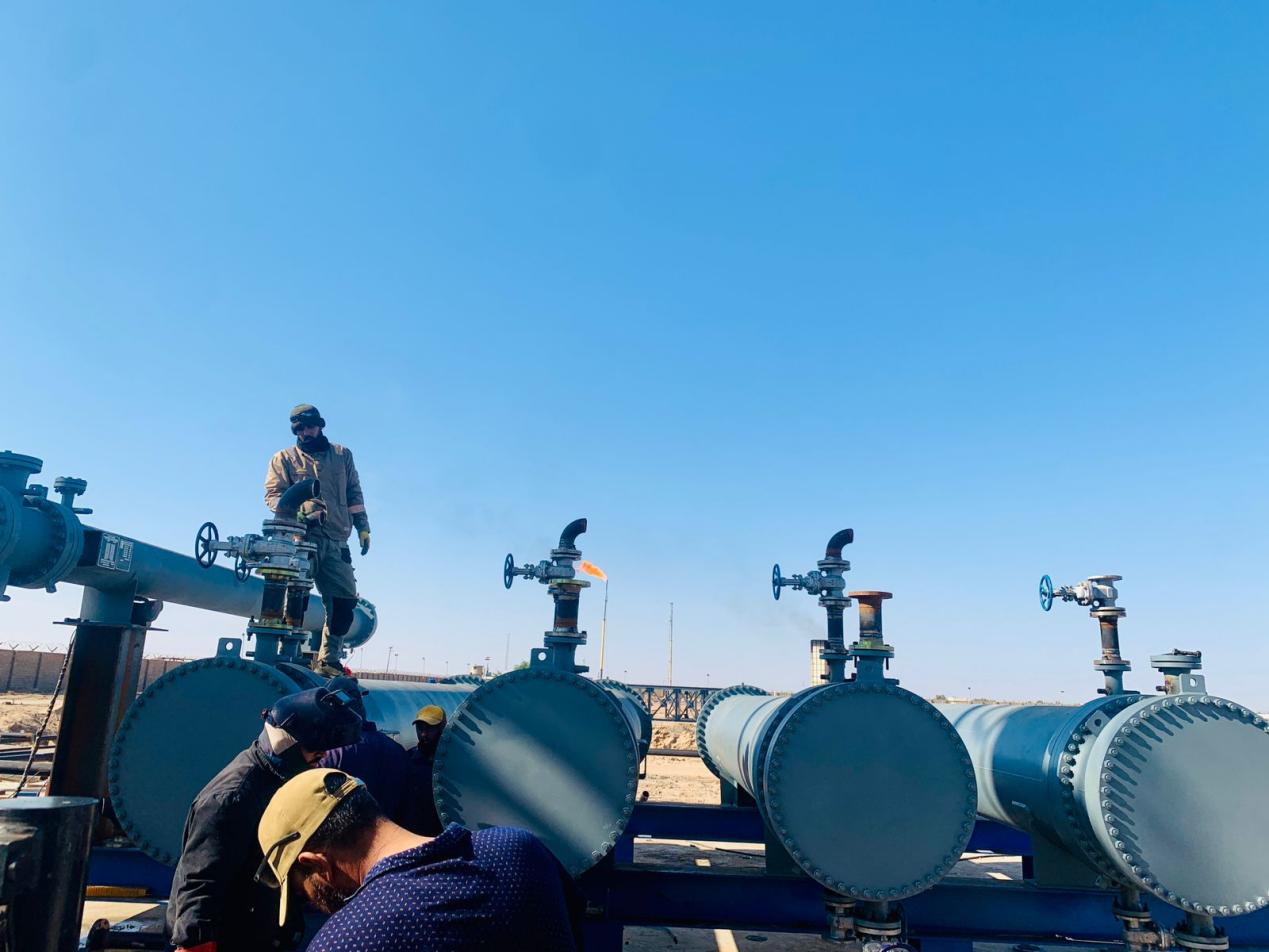 After receiving the production task order, the production department of Tongyang will allocate the team, verify the inventory of materials and accessories, and proceed with procurement. The workshop strictly follows the production task order to control every step of production. The production department is responsible for welding and manufacturing the project equipment, and arranges self-inspection or third-party inspection according to the inspection points in the ITP (Inspection and test plan). If the actual quality measurement deviates from the drawing, rectification work should be carried out. Complete all processes within the specified delivery period. Finally, coordinate with the quality supervision department to arrange final inspection and conduct product quality inspection for each heat exchanger. After passing the inspection, paint the parts, attach nameplates, and weld them onto the rack.